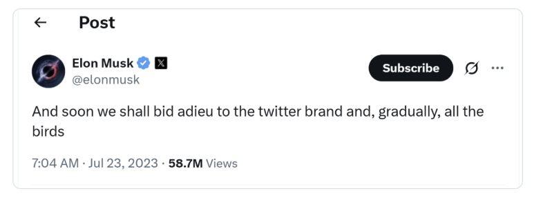 گفتنی است، ایلان ماسک در سال ۱۹۹۹ شرکت X.com را بهعنوان یک شرکت خدمات مالی آنلاین راهاندازی کرد که بعدها پس از ادغام با Confinity به PayPal تبدیل شد. این X.com اولیه هیچ ارتباطی با X کنونی (که پیشتر توییتر بود) ندارد. ماسک این نام را زمانی که توییتر را در سال ۲۰۲۳ ریبرند کرد، دوباره احیا کرد.