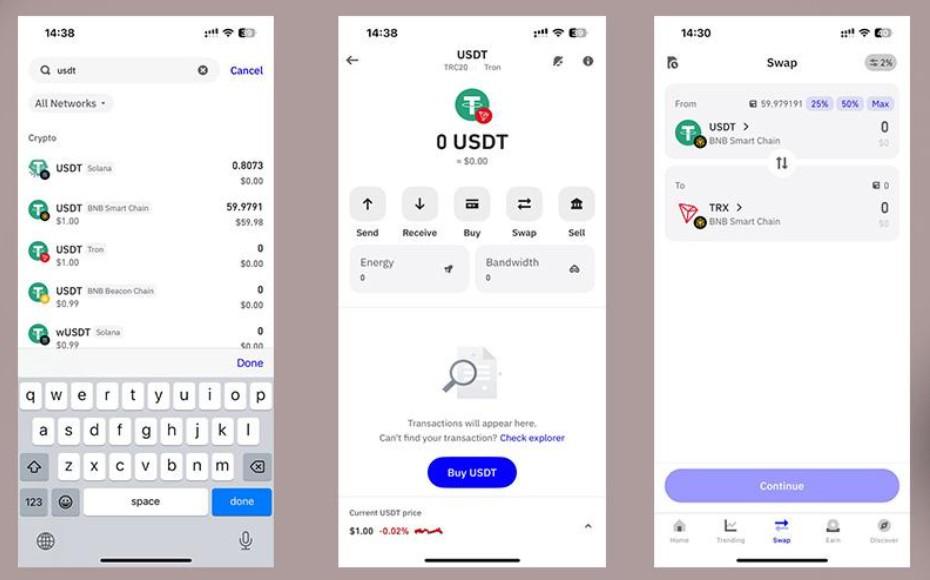 شما میتوانید درون خود کیف پول، ترون را با دیگر ارزها سواپ کنید یا آن را استیک کرده و پاداش دریافت نمایید. این امکانات، مدیریت داراییها را راحتتر و کاربردیتر میکند.