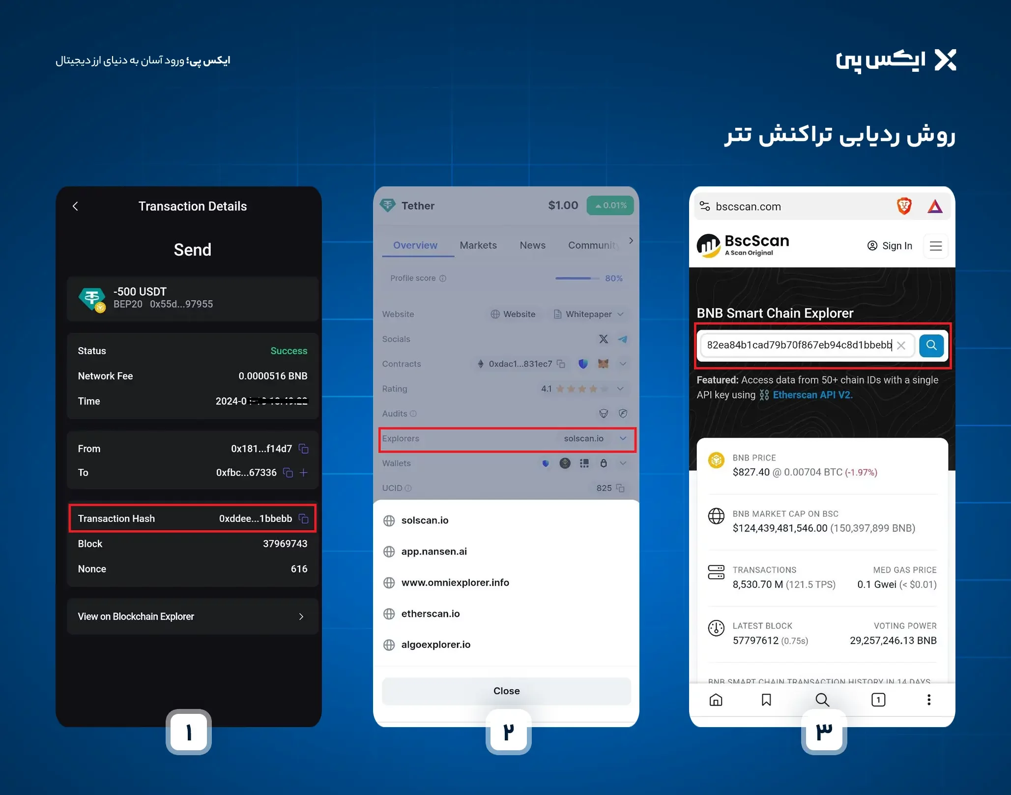 ردیابی تراکنش تتر چند مرحله ساده دارد که در ادامه به ترتیب بررسی خواهیم کرد.